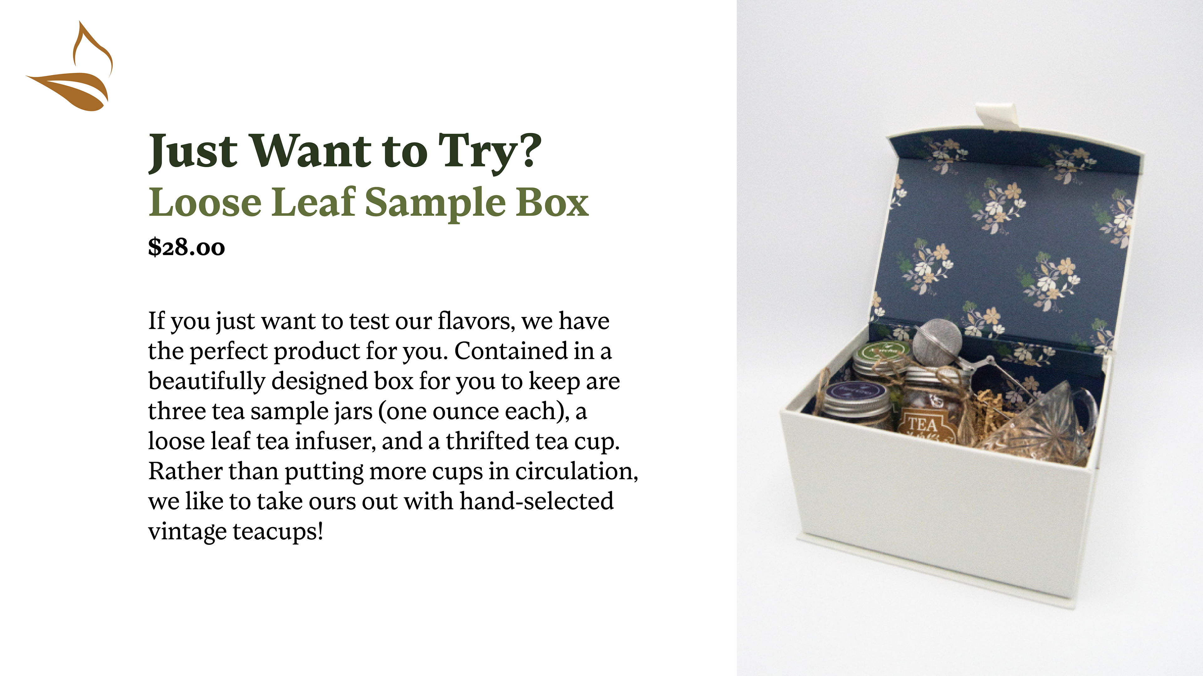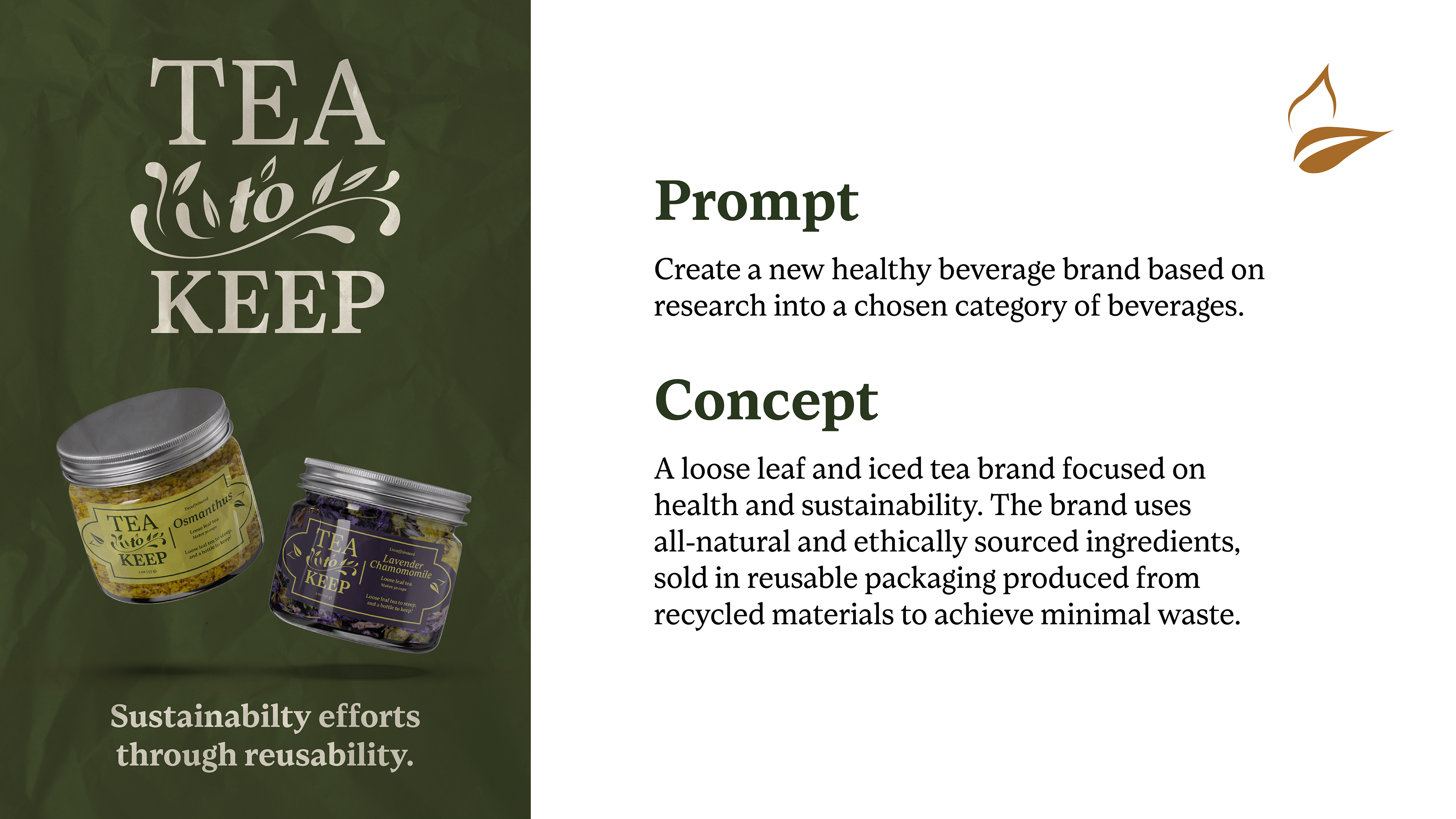 Prompted to create a new healthy beverage brand based on research into the chosen brand category. I chose to create a brand focused on health and sustainability in its variety of loose leaf and iced tea products.